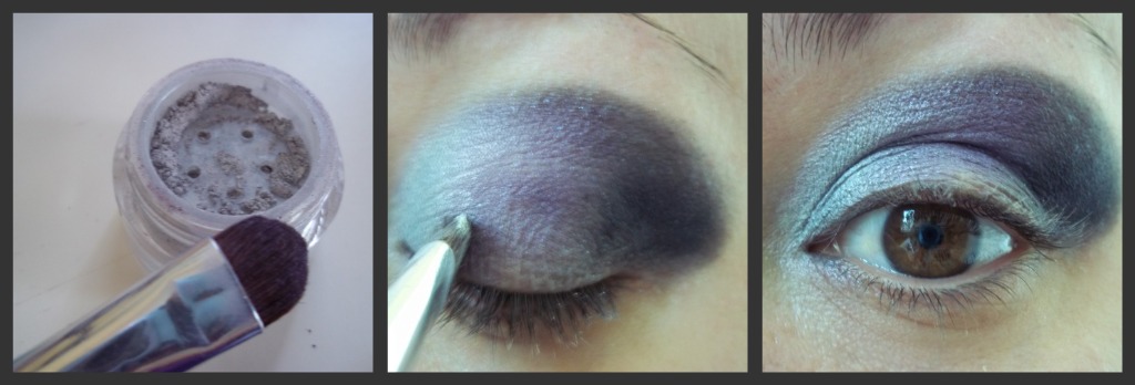 Dip back into your pot of Dark Shimmer Purple and apply it half way on top of the Dark Shimmer Gray/Silver. Blend the color inwards.